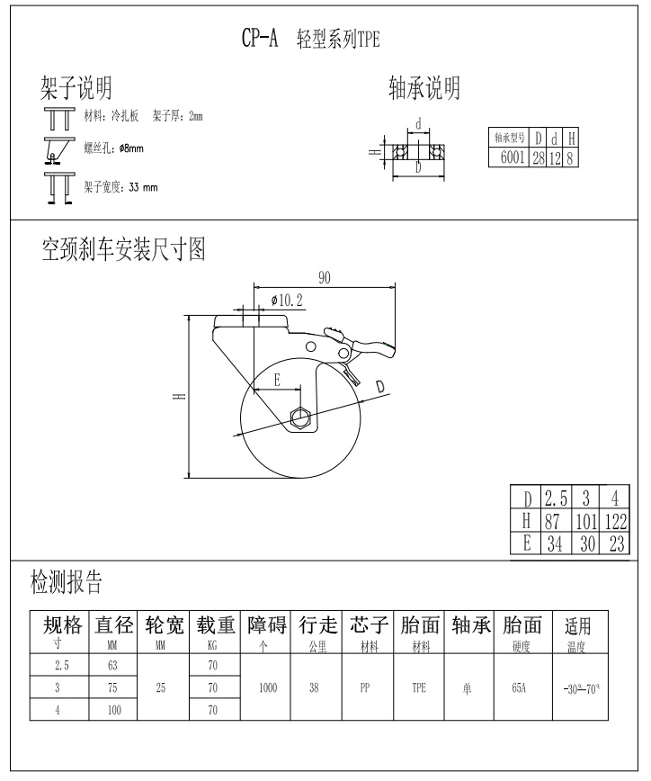 輕型腳輪-CP-A4-2561空頸剎車TPE
