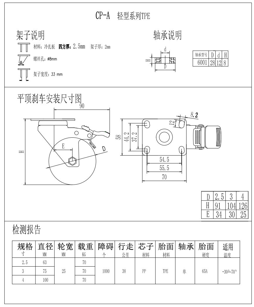 輕型腳輪-CP-A3-2531萬向剎車TPE